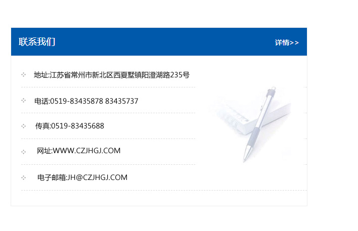 地址:常州市新北區友邦商務大廈1幢16、17層  電話:0519-85101652  傳真:0519-85112595  郵編:213022  網址:www_cz-jiayue_cn.letouquan.com  郵箱:xiajifengaa@163.com